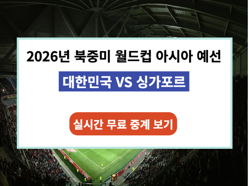 2026 북중미 월드컵 아시아 2차 예선전 대한민국 VS 싱가포르 실시간 라이브를 무료로 시청하시는 방법을 찾고 계시죠?