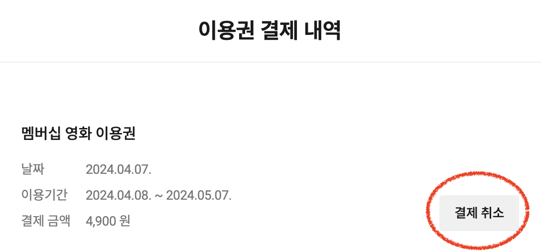 5. 이용권 결제 내역 > 결제 취소하면 완료!