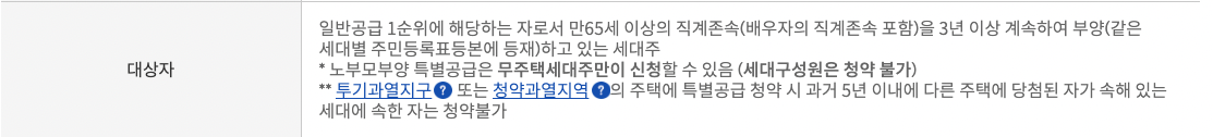- 국가유공자, 독립유공자, 보훈대상자, 참전유공자, 3자녀 이상세대, 신혼부부, 노부모부양가구, 북한이탈주민, 철거주택 소유자 및 세입자 등